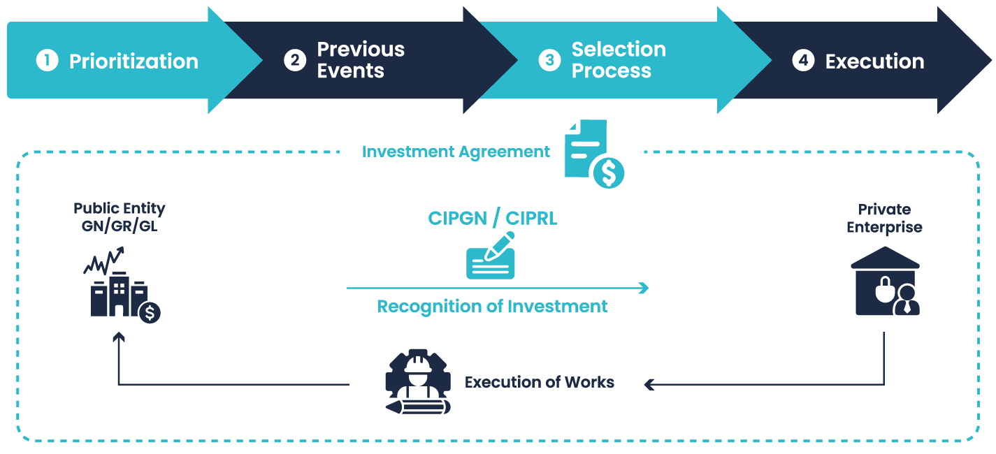 Signing of the agreement and culminating with the recognition of the investment, through the issuance of the CIPRL or the CIPGN according to the obligations assumed by the private company.