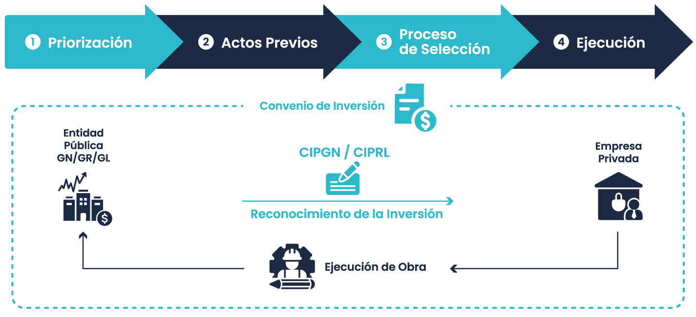 Suscripción del convenio y culmina con el reconocimiento de la inversión, mediante la emisión del CIPRL o del CIPGN según las obligaciones asumidas por la empresa privada.